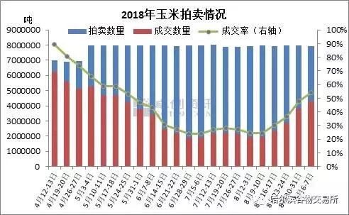 导致近期价格大幅反弹的原因主要三点: 第一,市场货源减少,拍卖成交回升 截至9月7日,2018年拍卖已经累计进行22周,共成交玉米7529万吨,2013年基本见底,2014年玉米剩余1044万吨,2015年玉米剩余9594万吨,粮库剩余库存约1.06亿吨。 从成交情况来看,拍卖成交呈现先降后升变化。4月拍卖初期成交热情较旺,成交量达到500万吨,6-8月每周拍卖成交降至200万吨,低于正常消费量,市场货源及厂家库存消耗中逐渐下降,很多囤粮因资金、心态消极等因素陆续出货,其中不少亏损出局。8月中旬开始,拍卖成交量、成交价均双双回升,市场粮商库存见底,市场供应收紧,市场转向拍卖市场。本周成交量400万吨以上,连续第四周回升,平均价格也较前面拍卖低迷期提高50元/吨。 第二,下游库存下降,阶段性补货增多 临储拍卖投放力度较大,8月厂家采购积极性不高,长期压价收购和消化库存。截至8月底,深加工厂库存及饲料厂库存普遍降至10-20天。秋粮上市临近但还有些时间,厂家基本不会大规模备货,基本以阶段性补货为主,保证新、陈玉米顺利过渡衔接。 第三,新粮减产预期点燃炒作热情 华北秋玉米进入乳熟期,预计中下旬陆续上市,月底将达到高峰。今年极端天气较多,东北、华北前期遭遇干旱、高温天气,一些地区授粉情况不理想,部分地区出现玉米颗粒偏少、花粒等现象,此外8月暴雨导致部分地区出现倒伏现象。新季玉米减产基本定局,市场挺价炒作心理增强。 9月市场走势影响因素分析 9月玉米新陈玉米过渡时期,也是市场博弈敏感时期,重要关注拍卖情况和市场心态的变化: 临储拍卖还在正常进行,是当前玉米供应的主力,目前没有明确停拍时间表,如果像去年持续到10月底的话,临储拍卖对市场的影响不容忽视。一方面拍卖成交回升,一部分满足正常需求,也有部分通过拍卖低价陈粮掺到新粮走高价套利。近期成交量已经回升,如果按照每周300-500万吨成交推测,9月市场新增陈粮1500-2000万吨,叠加新粮上市,后期玉米供应压力增大。另一方面,近期拍卖成交价回升,提振市场信心,新粮上市开秤更容易出现高开可能。 当前市场心态较前期改善,主要是受到玉米去库存加快和新粮减产预期的双重支撑。今年玉米拍卖成交有望突破8000万吨,临储玉米库存将降至1亿吨以下,短短2年的时间库存下降一半,下游需求稳步增长也是去库存较快的重要因素,中远期随着供需面的改善,从根本上有利于价格上升。而今年秋粮减产预期较强,市场对新季玉米走势普遍较为乐观。 9月初玉米价格走强,这与去年走势相似,体现了季节性的特点。目前上涨势头已经减缓,中旬市场将转向弱势,这一点与去年类似,不同的是不会像去年那样掉头急跌。下旬新粮陆续上市,卓创预计华北新玉米开秤价格在0.86-0.88元/斤,较去年略高一点,随后在厂家打压之下下滑。考虑到秋粮减产及市场信心的恢复,预计今年农户惜售比较普遍,理性卖粮逐渐增多,市场跌幅有限,底部价格将高于去年0.01-0.02元/斤。
