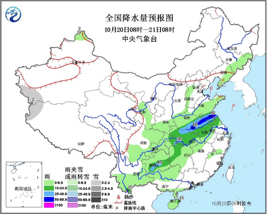 10月20日:未来三天全国天气预报 时间:2014-10-20 来源:中国气象局 华北雾霾将逐渐消散 黄淮南部等地有较强降水 一、重要天气 1. 华北雾霾将逐渐消散 中央气象台10月20日06时继续发布霾黄色预警:预计20日08时至20时,北京南部、天津、河北中南部、山东西北部、山西中部、河南北部、陕西关中等地有中度霾,其中,北京南部、天津西部、河北西部沿山局地有重度霾。此外,20日上午上述部分地区有大雾,局地有能见度低于200米的强浓雾。 20日中午起,上述地区雾或霾将自北向南逐渐减弱或消散。 2.黄淮南部等地有较强降水 20日,重庆东北部、江汉、黄淮南部、江淮、江南西北部、贵州南部等地有一次中到大雨的降水过程,其中,河南东南部、安徽北部、江苏北部等地的部分地区有暴雨(50~80毫米)。 3.较强冷空气继续影响东北地区 20至22日,较强冷空气影响内蒙古中东部、东北地区,气温将下降6~10℃,局地可达12~14℃,并伴有4~6级偏北风。我国东部海区将有6~8级,阵风9级的偏北风。 二、未来三天具体预报 10月20日08时至21日08时,西藏西南部等地有小雪;东北地区东南部、华北中部、黄淮、江淮、江汉、江南北部和西部、西南地区东部和南部、华南中部和西部等地有小到中雨,其中,河南南部、苏皖北部、贵州西南部等地有大到暴雨(50~80毫米)。东北地区北部、华北东部、黄淮东部、江淮东部等地有4~5级风。渤海将有7~8级、阵风9级的东北风。 21日08时至22日08时,西藏中北部、青海南部、新疆西北部等地的部分地区有小到中雪或小雨;四川盆地西部、云南东部、贵州东南部、黄淮东南部、江淮大部、江南大部、华南等地有小到中雨,其中云南东南广西东北部局地有大雨(25~30毫米)。新疆北部、内蒙古西部和中部等地的部分地区有4~5级风。渤海、黄海南部、东海北部将有7~8级、阵风9级的偏北风。 22日08时至23日08时,青海南部、西藏东部、川西高原西部有小到中雪(雨)或雨夹雪。甘肃东南部、四川中东部、重庆西南部、贵州西部、云南东部和南部、华南南部和东部等地有小到中雨,其中四川盆地西南部、云南南部的部分地区有大雨(25~35毫米)。内蒙古中西部有4~6级大风。 |