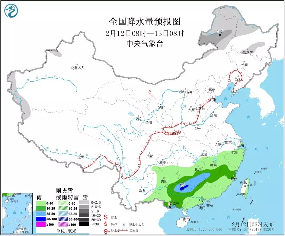 02月12日:未来三天全国天气预报 时间:2020-02-12 来源:中国天气网 江南华南等地有中到大雨 华北黄淮汾渭等地大气扩散条件较差 华北黄淮江淮部分地区有大雾 一、今晨中东部地区出现大范围大雾天气 今晨,辽宁南部、华北中东部、黄淮中西部、江淮中部、江南大部、华南北部及重庆南部、贵州等地出现大范围大雾,其中,北京东南部、河北东南部、山东西南部、河南中东部、安徽中北部、江苏中部、湖南中北部、贵州、广西北部等地的部分地区出现强浓雾,山东西南部、河南东部等局地出现特强浓雾(能见度低于50米)。另外,昨日,湖南东部、江西中部、安徽东南部、浙江中部、福建西部和北部、广东北部和广西北部等地出现中到大雨,福建三明等地局地暴雨;新疆北部出现小到中雪,阿勒泰局地大雪。 二、重点天气预报 1.江南华南等地有中到大雨 12日,江南南部、华南北部等地自西向东将有中到大雨,上述局部地区并伴有雷电等对流性天气。 13日至15日,中东部地区将有大范围雨雪天气,西南地区东部、江汉中南部、江淮、江南、华南等地的部分地区将自西向东出现中到大雨,局地暴雨,上述部分地区有雷电、局地伴有雷雨大风和冰雹等对流性天气;西北地区东南部、华北、黄淮、江汉北部等地的部分地区将出现雨或雨夹雪转雪,其中华北中东部、黄淮东部等地有中到大雪,局地暴雪。 2. 华北黄淮汾渭等地大气扩散条件较差 12日至13日白天,华北中南部、黄淮、汾渭平原等地大气扩散条件较差。13日夜间起受冷空气和降水共同影响,上述地区大气扩散清除条件逐渐改善。 3. 华北黄淮江淮部分地区有大雾 预计12日早晨至上午,辽东半岛及辽宁西南部、北京东部和南部、天津西部和北部、河北中部、山东西部、河南东部、苏皖中北部、湖北东南部、湖南中部、重庆南部、贵州东部、广西北部、广东中北部等地部分地区有大雾或浓雾,局地有能见度不足200米的强浓雾或能见度度不足50米的特强浓雾。渤海北部、渤海海峡、辽东半岛沿海、江苏沿岸海域、琼州海峡、广东西部沿岸海域有能见度不足1000米的大雾天气(见图1),中央气象台2月12日06时继续发布大雾黄色预警。