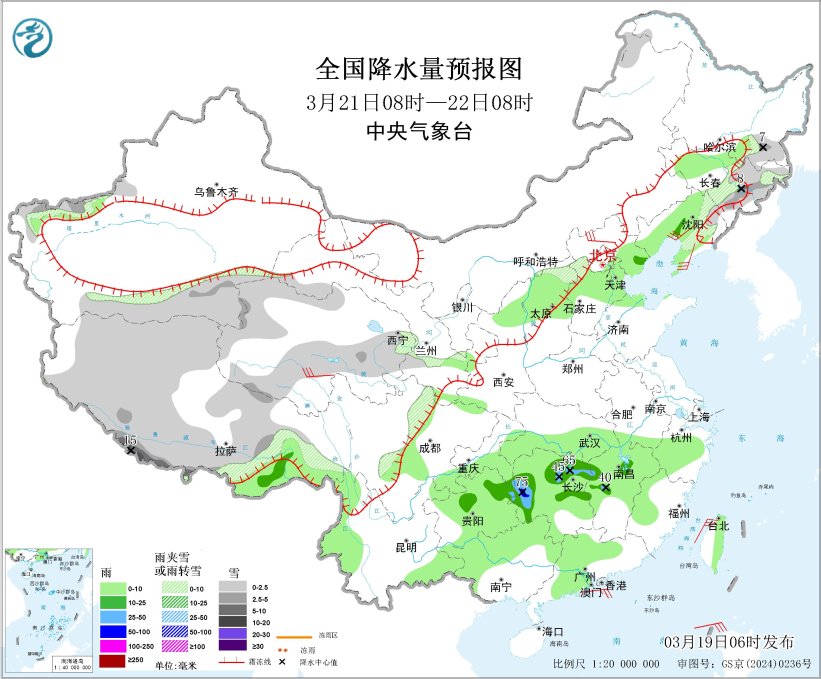 03月19日:未来三天全国天气预报 时间:2026-03-19 来源:中国天气网 西南地区至长江中下游多降水 摘要: 国内方面,昨日,东北等地出现明显降雪和降温天气。未来三天,青藏高原、南疆西部及东北地区仍有雨雪天气,关注对交通运输、农牧业、工程建设等的影响;未来十天,西南地区东部、江南及西藏东南部等地多阴雨天气,关注对农业生产的影响,并防范次生灾害。 全球方面,昨日,澳大利亚中部、阿根廷北部等地出现较强降雨;美国东部等地出现强降温。未来三天,加拿大西部有较强降雪;地中海沿岸有较强风雨和沙尘;澳大利亚北部有较强降雨。 一、国内天气情况 1.实况 昨日东北等地出现明显降雪和降温 昨日8时至今日6时,青海中东部、西藏东部、内蒙古东北部、黑龙江中东部和西北部、吉林中东部、辽宁中东部等地出现小到中雪或雨夹雪,黑龙江鸡西和大兴安岭等地局地大雪或暴雪;安徽南部、浙江等地出现中到大雨。青海、西藏、川西高原和内蒙古中东部等地出现8级以上阵风,局地10~12级。今晨,东北地区、华北、黄淮等地出现4~8℃降温,黑龙江局地降温幅度10~16℃。 2.重点天气预报 西南地区至长江中下游多降水 未来三天,贵州、重庆、江汉南部、江南、华南北部以及山西北部、河北中部、东北地区南部等地有小到中雨,局地大雨或暴雨;青藏高原西部的部分地区有中到大雪,局地暴雪或大暴雪。 此外,22-26日,南方地区还将有一次大范围降水过程,江汉、江淮、江南、西南地区东部以及广西北部、西藏东南部等地有中到大雨,局地暴雨或大暴雨,上述部分地区并伴有雷电天气;青藏高原东部等地有小到中雪(雨)或雨夹雪,局地大到暴雪。 二、全球天气情况 1.实况 (1)澳大利亚中部阿根廷北部等地出现较强降雨 昨日,澳大利亚中部、所罗门群岛、印度尼西亚、马来西亚西部、泰国南部、巴基斯坦中部、孟加拉国、印度东部、莫桑比克中部、马拉维、意大利南部、突尼斯东部、西班牙北部、巴西南部、巴拉圭、阿根廷中部、智利中南部、秘鲁中部、厄瓜多尔、美国东部、墨西哥、古巴等地部分地区出现中到大雨,局地暴雨或大暴雨。 (2)美国东部等地出现强降温 昨日,俄罗斯西伯利亚中南部、蒙古国北部、芬兰、挪威、瑞典、塔吉克斯坦、加拿大西南部、五大湖附近、拉布拉多半岛等地部分地区出现中到大雪或雨夹雪,其中,拉布拉多半岛出现暴雪到大暴雪。美国东部、墨西哥北部、突尼斯、蒙古国东部等地出现6~10℃降温,局地12~16℃。 2.重点天气预报 (1)加拿大西部有较强降雪 未来三天,受新一轮冷空气影响,阿拉斯加地区南部、加拿大西南部以及拉布拉多半岛、五大湖地区有中到大雪或雨夹雪,局地有暴雪;上述部分地区6~10℃降温,局地14℃以上;加拿大西部、美国北部、五大湖附近有4~6级风、阵风7~8级,阿拉斯加地区南部沿海地区阵风9~10级。 (2)地中海沿岸有较强风雨和沙尘 未来三天,受地中海气旋影响,意大利东部、希腊南部、葡萄牙西部等地部分地区有中到大雨,局地有暴雨;阿尔及利亚东部、利比亚、埃及西部等地有扬沙或浮尘,局地有沙尘暴;上述部分地区伴有4~6级风、阵风7~8级。 (3)澳大利亚北部有较强降雨 未来三天,受热带气旋“纳蕾勒”影响,澳大利亚昆士兰州北部、北部地区和西澳大利亚州北部、巴布亚新几内亚、所罗门群岛等地有中到大雨,局地有暴雨到大暴雨,上述部分地区有4~6级风、阵风8~9级。需注意防范大风强降水引发次生灾害。 三、国内未来三天具体预报 3月19日08时至20日08时,新疆南疆西部山区、青海东北部和南部、西藏北部和西部、川西高原北部、甘肃西部、内蒙古东北部、黑龙江大部等地部分地区有小到中雪或雨夹雪,其中,新疆南疆西部山区、西藏西部等地部分地区有大到暴雪(10~15毫米);西藏东南部、西南地区东部、湖北西部、江南中西部、华南北部、福建北部、台湾岛东部等地部分地区有小到中雨,其中,贵州东北部、湖南西部和中部、广西东北部等地局地有大雨(25~40毫米)。内蒙古东南部、河北北部、辽东半岛、西藏中北部等地部分地区有5~7级风,其中,西藏中部部分地区有7~8级风;东海南部、台湾海峡、台湾以东洋面等海域有5~6级风、阵风7级(见图1)。