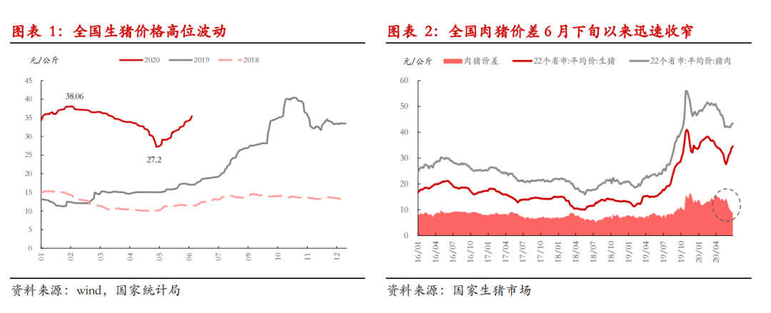 与2019年下半年相比,2020年下半年生猪供应可能略少于2019年下半年的供应状况或基本持平。当前市场对2019年下半年以来补栏积极的事实关注度较高,认为2020年下半年生猪出栏量将较为集中,但是对于出栏节奏和出栏的准确量缺乏预估,尤其容易忽略,2020年下半年生猪出栏量只能建立在2020年上半年的基础产能之上,而2019年下半年生猪存栏虽然集中去化,但是2019年上半年生猪基础存栏总体仍处于较高位置,因此,2020年下半年生猪整体出栏量能否超过2019年下半年生猪出栏总量就值得思考。我们通过实地调研结合历史月度屠宰量进行测算,得出两方面的结论。一是就生猪存栏恢复节奏来看,2020年三季度生猪供应逐步恢复,但预计出栏增加并不显著,四季度将是补栏生猪出栏较为集中的时期,同时三季度生猪消费需求集中释放,因此预计三季度猪价将逐步走强,四季度随着季节性需求小幅回落和供应集中放量,预计猪价总体回落为主。二是2020年下半年生猪整体供应量与2019年下半年相比基本相当,如果出栏节奏稍不及预期就可能带来猪价持续走高,不排除猪价高点超过2020年下半年高点的情况。
